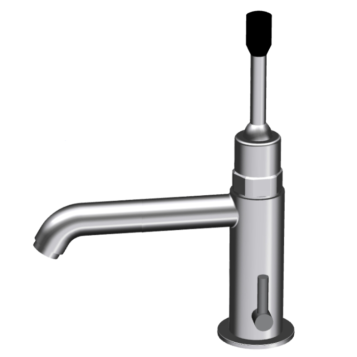 Latón cromado. Palanca de accionamiento de acero y pomo protector de plástico en el extremo Cierre automático temporizado.